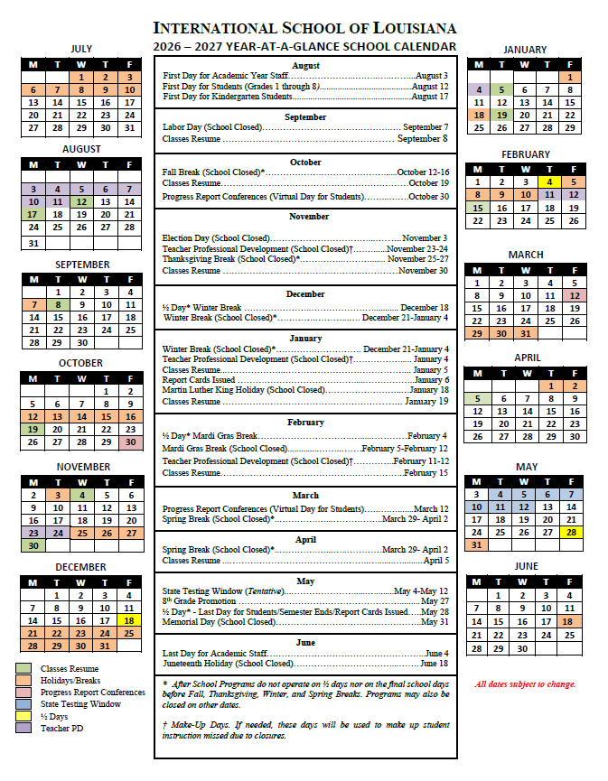 All ISL Offices and Buildings will be closed and there is NO SCHOOL for students from Monday, 4/6/2026 through Friday 4/10/2026 for Spring Break. Faculty and staff will be unavailable during this time. There will be no aftercare programs on Friday, April 3. ISL buildings and offices will reopen when classes resume on Monday, April 13, 2026.