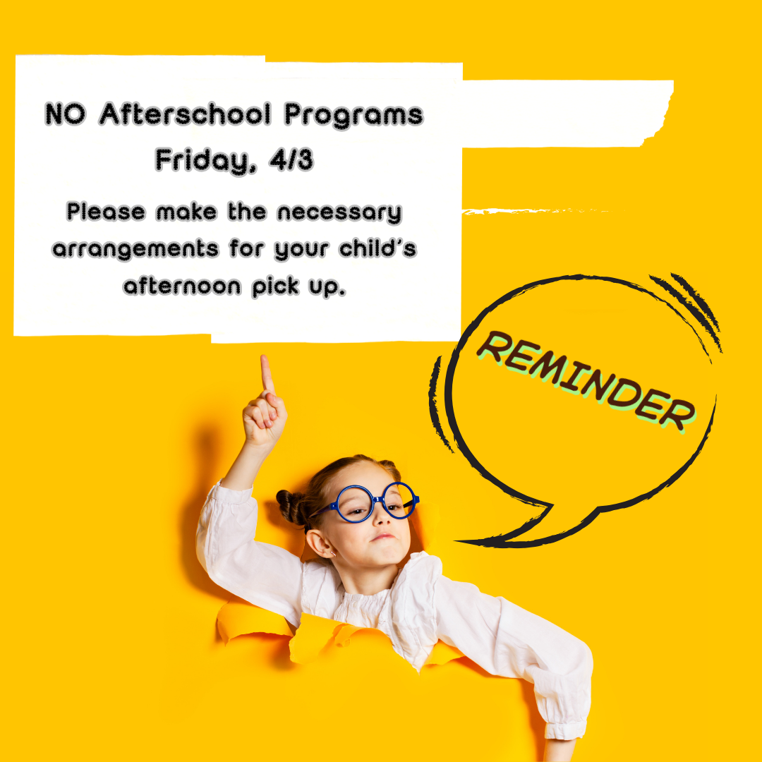 April 3: NO After School Programs: Prime Time, Community Works, Activities