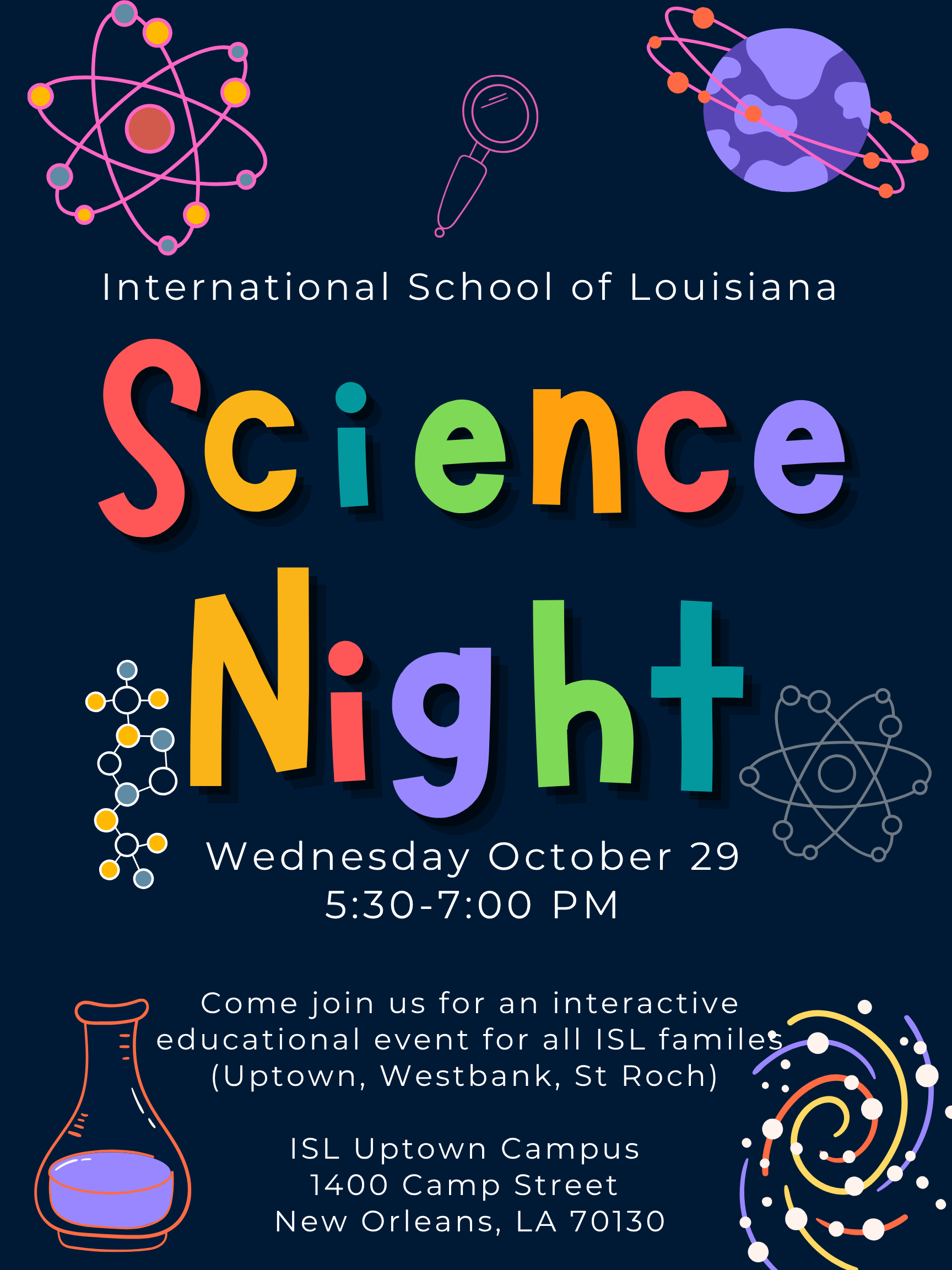 October 29: ISL Family Science Night (5:30-7pm) and Mobile Blood Drive (3:30-7pm) All ISL families invited.