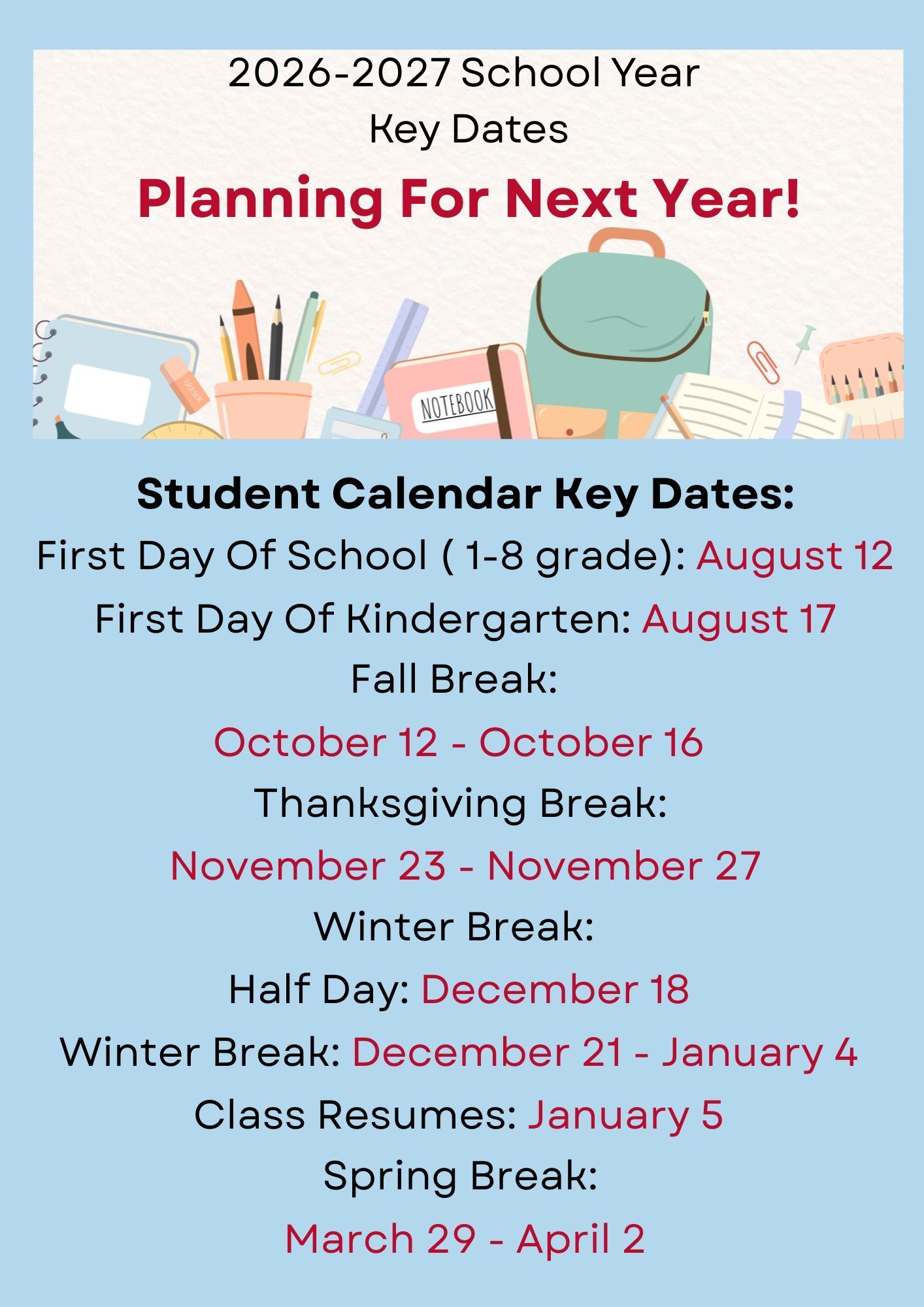 - Early Dismissal Wednesdays: 2:45pm - 5:30pm