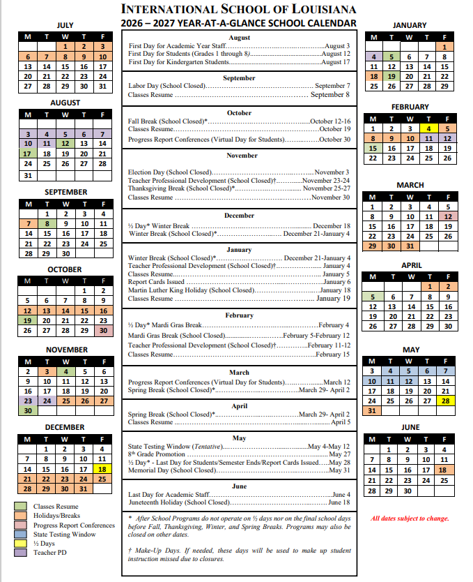 Melissa Boudreaux, Director of Food Services: (504) 444-2696 mboudreaux@isl-edu.org